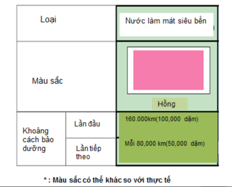 - Nên thay nước làm mát lần đầu tại 160.000 km; sau đó thay mỗi 80.000 km làm việc của động cơ.