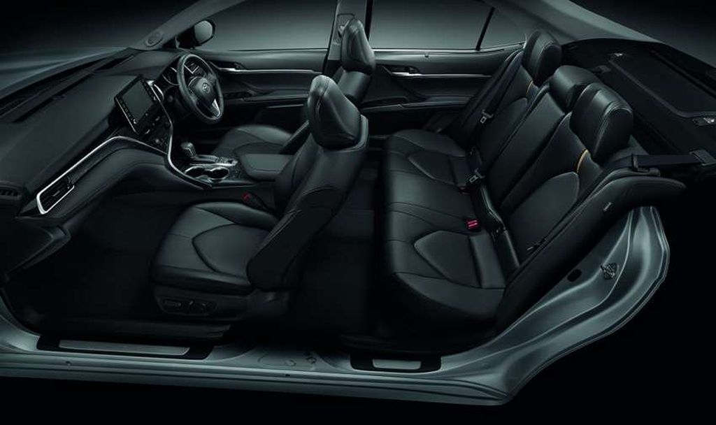 Ngoại thất của Toyota Camry 2022 bản 2.0Q được nâng cấp với đèn pha chiếu gần/xa loại LED/Bi-LED, mâm xe kích thước 18 inch. Bên trong cabin của chiếc sedan được bổ sung thêm lẫy chuyển số, vô-lăng chỉnh điện, cửa sổ trời, màn hình 9 inch hỗ trợ Apple CarPlay, điều hòa 3 vùng, lưng hàng ghế sau chỉnh điện, da cao cấp, sạc không dây và màn hình đa thông tin 7 inch.